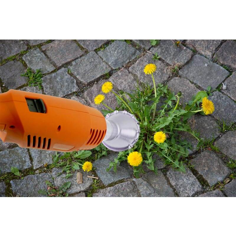 Ein elektrischer Unkrautbrenner funktioniert, indem er das Unkraut etwa 3 Sekunden lang erhitzt. Wenn die Unkrautpflanze schnell erhitzt wird, erleidet sie einen thermischen Schock, der die Zellen von innen platzen lässt und die Pflanze innerhalb weniger Tage verwelkt.