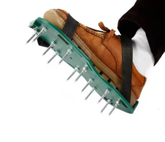 Verleihen Sie Ihrem Rasen mit Rasenbelüftungsschuhen neues Leben. Die Schuhe werden direkt über Ihrem normalen Schuhwerk getragen und sind mit stabilen Spikes ausgestattet, die beim Gehen Löcher in den Boden stechen. Dies verbessert die Sauerstoff- und Wasserversorgung der Graswurzeln und sorgt für einen gesunden, grünen und dichten Rasen.