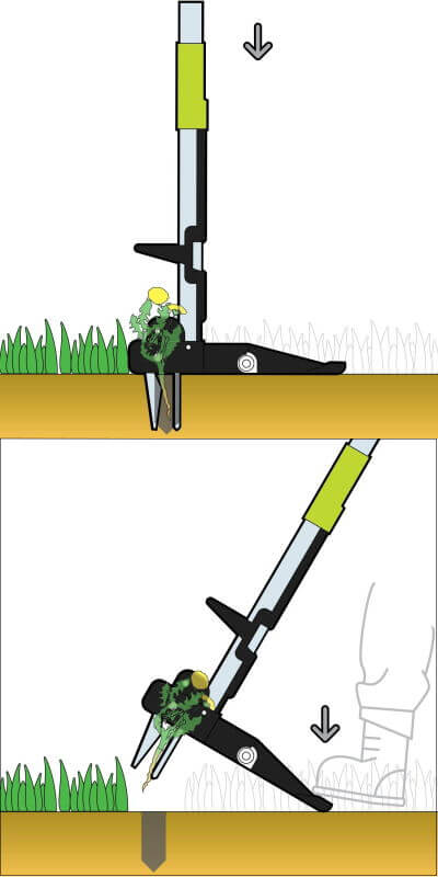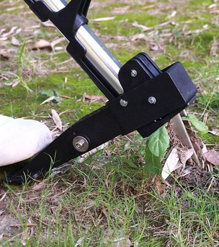 Der Löwenzahnentferner ist mit einer cleveren Lösung ausgestattet, die es ermöglicht, das gesammelte Unkraut mit dem Fuß von der Kralle zu entfernen.
