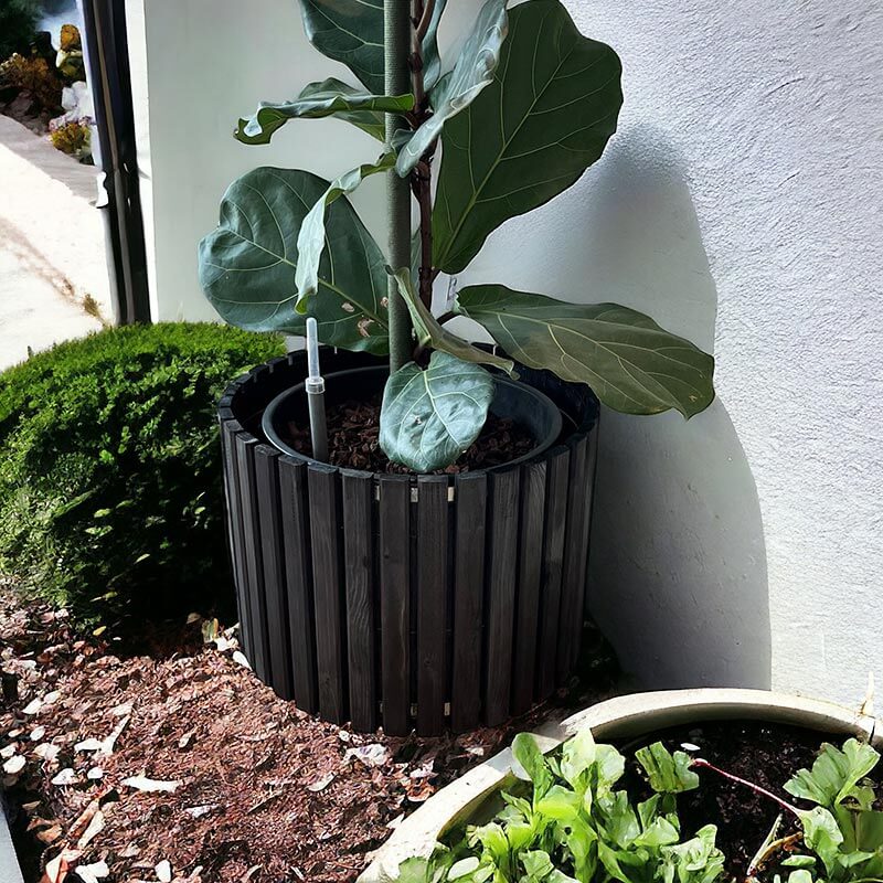 Rundes Hochbeet aus schwarzem Holz Ø60 H40 cm