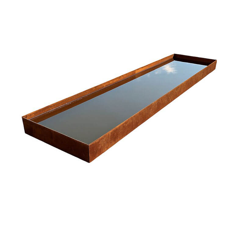 Der reflektierende Pool kann überall im Garten aufgestellt werden, benötigt aber eine ebene Fläche. Er kann auf einer gefliesten Terrasse, in einem Pflanzenbeet oder flach in Pflastersteine ​​eingegraben werden – nur Ihre Fantasie setzt die Grenzen.